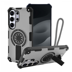 Rugged Magnetic Case with Foldable Kickstand & Wrist Strap for S26 Plus - Gray